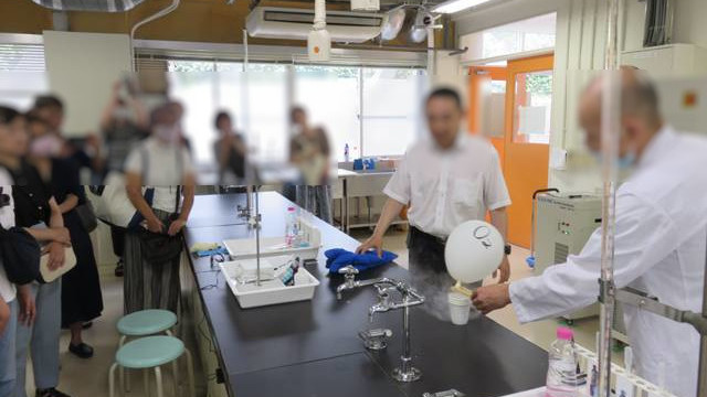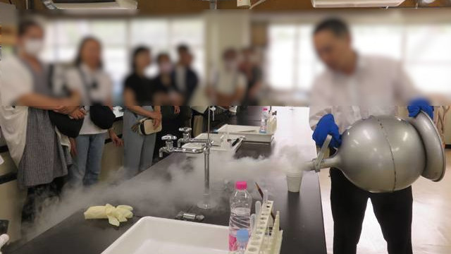 また、生成した液体窒素を使用し、酸素の液化実験を見学しました。この実験は1年生のものづくり基礎工学でも行われているもので、1年生がどういう実験を行っているのか少し体験出来ました。